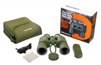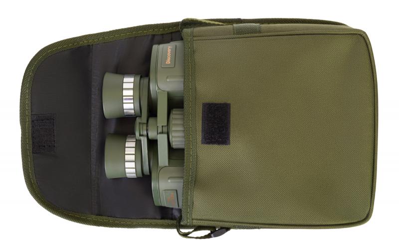 Levenhuk Discovery Field 10x50 — бинокль с оптической системой, основанной на Porro-призмах и линзах из стекла BK-7. Увеличение составляет 10 крат, диаметр объектива — 50 мм. Диаметр выходного зрачка — 5 мм, вынос выходного зрачка — 15 мм. Реальный угол зрения — 6.5°, поле зрения на расстоянии 1000 м — 110 м. Минимальная дистанция фокусировки — 10 м. Межзрачковое расстояние регулируется в диапазоне 54–74 мм. Фокусировка осуществляется центральным барабаном. На правом окуляре расположено кольцо для коррекции диоптрий (±4 D). Наглазники окуляров выполнены из резины. Оптика имеет многослойное просветление. Корпус выполнен из пластика, покрыт резиной. Размер упаковки: 21×20×8 см. Вес в упаковке: 1.19 кг.