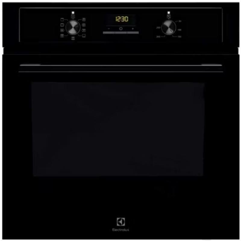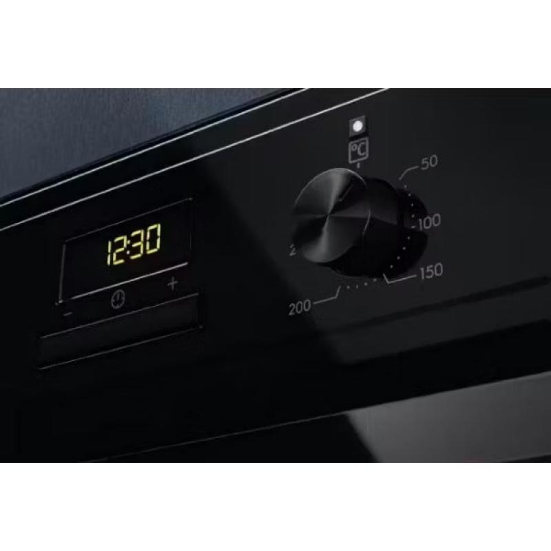 Духовой шкаф ELECTROLUX EOF3H50BK электрический, 45 см. Мощность гриля 2090 Вт, максимальная температура нагрева 250 °С. Очистка гидролизная, режимы включают гриль, конвекцию и размораживание. Функции содержат автоматический быстрый разогрев, таймер и часы. Особенности конструкции: дисплей, вентилятор охлаждения, полностью стеклянная внутренняя поверхность дверцы, телескопические направляющие 1-уровневые. Количество программ 9, длина кабеля 1.5м. Цвет черный. Класс энергоэффективности A. Размеры 59.5х56х58.9см.