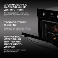 Духовой шкаф HYUNDAI HEO 6647 BG электрический. Мощность подключения составляет 2300 Вт, максимальная температура нагрева достигает 250 °С. Управление осуществляется поворотными и сенсорными переключателями. Оснащен электронным таймером и дисплеем. Внутреннее покрытие выполнено из эмали легкой очистки Easy Clean. Имеются режимы гриля и конвекции, освещение обеспечивается галогенной лампой мощностью 25 Вт. Дверца открывается вниз, содержит три стекла. Цвет черный с серебристыми элементами. Класс энергоэффективности A. Размеры 59.5х57.7х59.5 см, вес 33.2 кг.