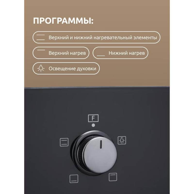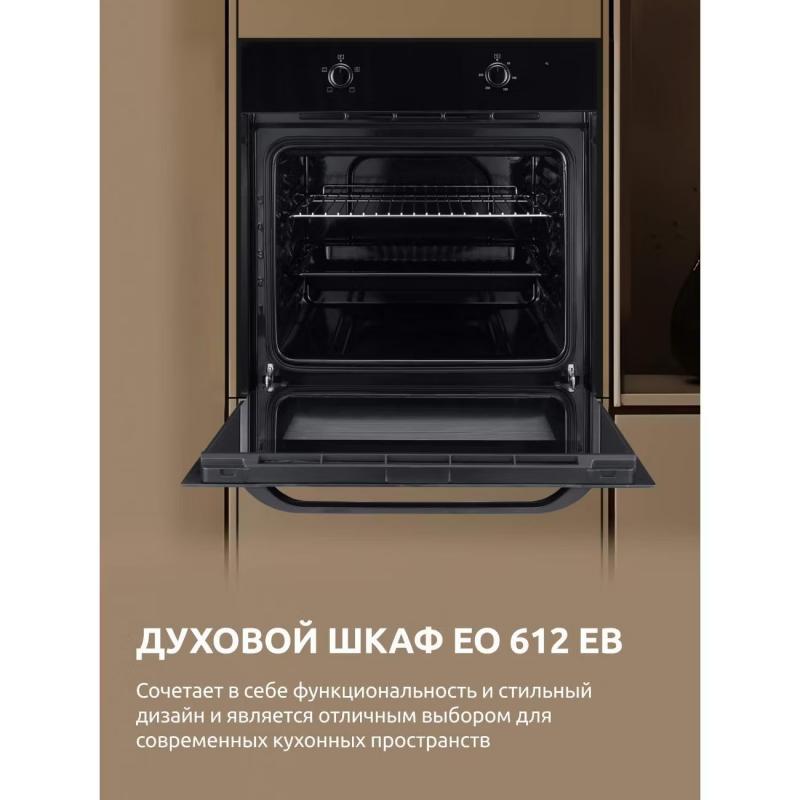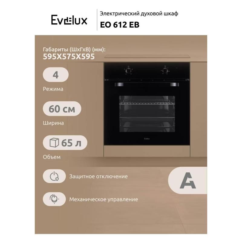 Электрический духовой шкаф Evelux EO 612 EB оснащен механическим управлением и вентилятором охлаждения корпуса. Максимальная температура нагрева составляет 250*С, а потребляемая мощность равна 2100 Вт. Внутреннее покрытие выполнено из эмали легкой очистки, дверца имеет 2-слойное стекло. Духовой шкаф работает в четырех режимах, включая верхний и нижний нагрев. Комплектуется плоским противнем решеткой для гриля. Класс энергоэффективности A. Цвет черный. Габариты 595*595*575 мм, вес 26.23 кг.