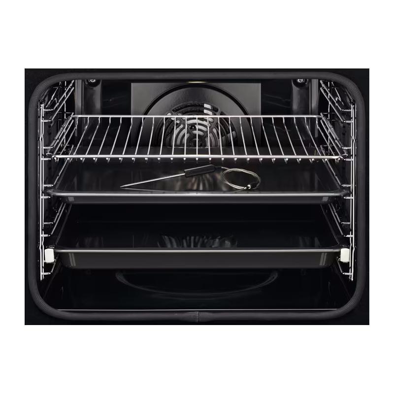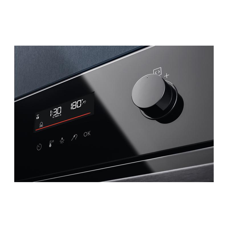 Электрический духовой шкаф Electrolux SteamBake 600 EOD6P77WZ с классом энергопотребления A+ оснащен электронным управлением и светодиодным экраном. Объем 72 литра. Пиролитическая очистка. Имеет проволочные и телескопические направляющие, одну пару телескопических направляющих. Температурный максимум 300°C. Мощность гриля 2300 Вт. Откидная дверца с тремя стеклами. 10 режимов работы: нижний нагрев, двухсторонний нагрев, большой гриль, размораживание, предварительный разогрев, пицца. Функционал включает таймер, отложенный старт, звуковой сигнал, блокировку от детей, термостат, освещение. В комплекте два эмалированных противня и решетка. Размеры для встраивания: высота 57.8-59 см, ширина 56 см, глубина 55 см. Габариты прибора: ширина 59.5 см, глубина 56.9 см, высота 59.4 см. Вес 33 кг.