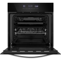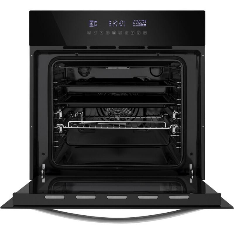 Электрический встраиваемый духовой шкаф Maunfeld EOEH.5811B объемом 59 л при стандартных размерах 60 см позволяет готовить одновременно несколько блюд, разместив решетку или противень на одном из 5 уровней боковых направляющих. Два уровня оснащены удобными телескопическими направляющими. Дверца духового шкафа состоит из 2-х стекол, что создает холодный фронт и делает процесс приготовления безопасным, исключая возможность ожога при касании. Внутреннее стекло имеет трамп-линии. Фронтальная панель дверцы и лицевая часть блока управления сделаны из высококачественного жаропрочного стекла черного цвета. Цельнометаллическая ручка из полированной нержавеющей стали не нагревается в процессе готовки. Внутреннее покрытие камеры выполнено из специальной легкоочищающейся эмали черного цвета. Сенсорный программатор с дисплеем COLD WHITE интуитивно понятен и удобен в использовании. Сенсорное управление позволяет выбирать режимы нагрева, температуру, длительность готовки, устанавливать таймер, блокировать панель управления и выводить код ошибки при появлении проблем в работе плиты. В данной модели поддерживается 11 функций работы: нижний и верхний нагрев, нижний нагрев, гриль, гриль с конвекцией, гриль с верхним нагревом, конвекция с нижним нагревом, полная конвекция с нижним нагревом, нижний и верхний нагрев с конвекцией, полная конвекция/равномерная выпечка, размораживание, освещение.
