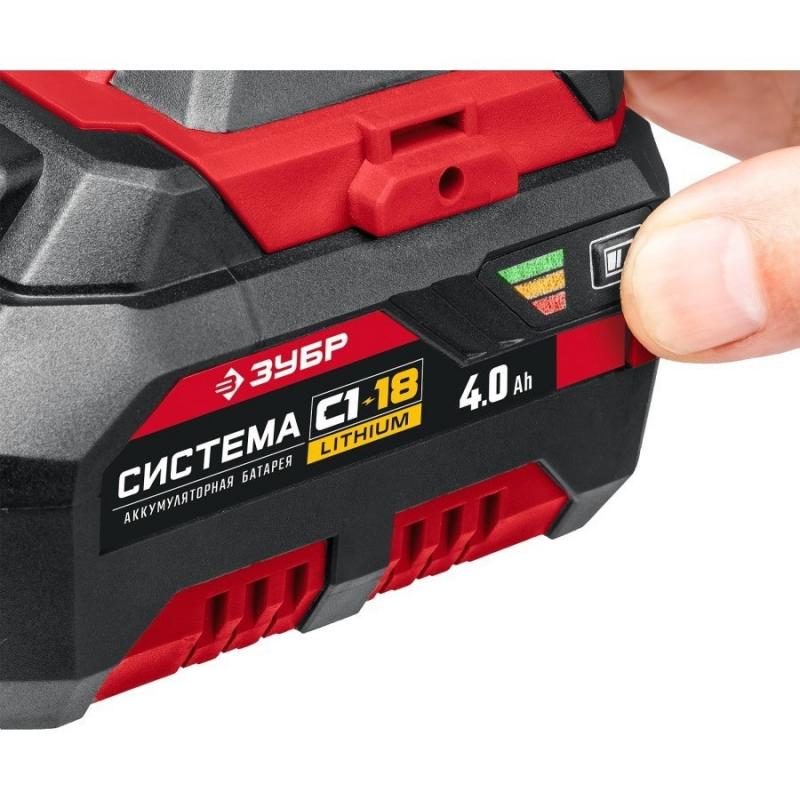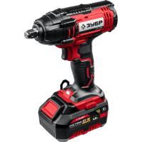 Гайковерт ударный ЗУБР ГУЛ-255-41 18В, 1 АКБ (4Ач), в кейсе, 250 Н*м, 1 скорость, 2800 об/мин, работает от аккумулятора Li-Ion 18 В, сверление с ударом, реверс, регулировка частоты вращения, встроенный фонарик, комплект поставки гайковерт, аккумулятор, зарядное устройство, кейс, вес 1,86 кг.
