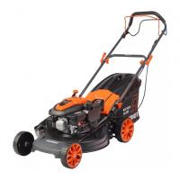 Газонокосилка Patriot PT 46S The One с бензиновым 4-тактным двигателем мощностью 4 л.с. (объем 130 см³), топливный бак 0.8 л. Самоходная конструкция с четырехколесным пластиковым шасси. Режущая система с роторным ножом обеспечивает ширину скашивания 46 см, регулировку высоты от 25 до 75 мм (7 уровней, центральная). Травосборник тканевый на жестком каркасе объемом 55 л, поддерживает боковой выброс и функцию мульчирования. Отсутствуют транспортировочные ручки, складная ручка и регулировка по высоте. Комплектация: газонокосилка, травосборник, крепеж, инструкция. Рекомендована для средних участков. Вес: 35 кг.