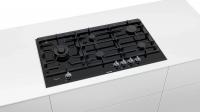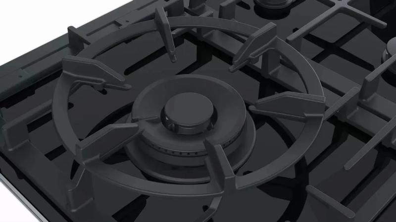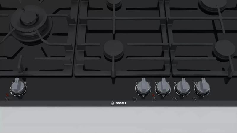 Газовая варочная панель BOSCH PRS9A6D70M имеет независимую установку и механическое управление с поворотными переключателями, расположенными спереди. Поверхность выполнена из стеклокерамики черного цвета, решетки изготовлены из чугуна. Модель оснащена пятью конфорками, включая конфорку ВОК мощностью 6 кВт с двухконтурной системой. Левая ближняя и правая ближняя конфорки имеют мощность 1.9 кВт, левая дальняя - 1.1 кВт, правая дальняя - 2.8 кВт. Все конфорки одноконтурные, кроме средней. Автоматический электроподжиг размещен в ручке, есть функция газ-контроля. Размеры панели составляют 916 х 527 х 59 мм, размеры ниши для встраивания 850 х 490 мм.