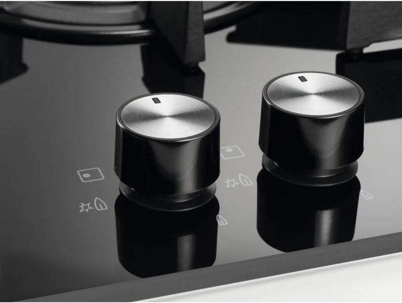 Газовая варочная панель ELECTROLUX KGG6426K с поверхностью из закаленного стекла черного цвета и чугунными решетками имеет независимую установку и заводскую настройку на природный газ с давлением 13 мбар. Механическое управление осуществляется поворотными переключателями, расположенными спереди, со встроенным автоматическим электроподжигом в ручке. Панель оснащена четырьмя конфорками: левая ближняя мощностью 1 кВт с диаметром 65 мм, левая дальняя мощностью 3 кВт с диаметром 100 мм, две правые конфорки по 2 кВт каждая с диаметром 80 мм. Суммарная мощность конфорок составляет 8 кВт. В модели присутствует функция газ-контроля. Длина сетевого шнура 1.1 м. Габариты изделия составляют 590х520х40 мм, размеры для встраивания 560х480х40 мм, вес 13.4 кг.