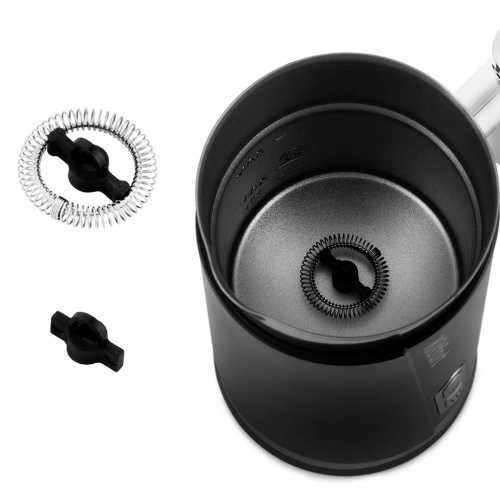 Капучинатор КТ-751 представляет собой стационарное устройство с питанием от сети мощностью 500 Вт. Модель оснащена четырьмя режимами работы и функцией подогрева. Емкость для молока вмещает до 300 мл. Корпус выполнен в черно-серебристом цвете. Длина шнура составляет 0.6 м. Габариты устройства равны 150х200х250 мм, вес составляет 1.2 кг.
