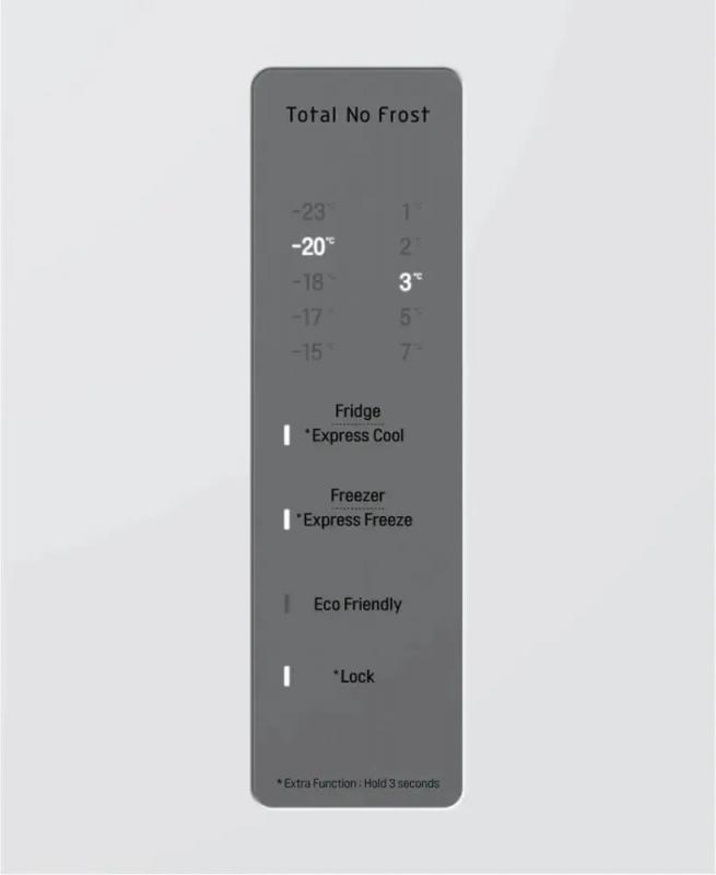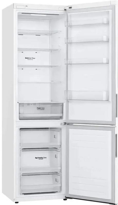 Холодильник LG GA-B509CQWL двухкамерный с нижним расположением морозильной камеры. Общий объем 419 л, полезный 384 л. Холодильное отделение содержит 292 л общего и 277 л полезного объема с пятью стеклянными полками и одним ящиком. Морозильная камера включает 127 л общего и 107 л полезного объема с тремя ящиками. Система размораживания Total No Frost. Электронное управление с внешним дисплеем. Температурный диапазон холодильной камеры от 1°C до 7°C, морозильной от -15°C до -23°C. Инверторный компрессор с хладагентом R600a. Функции суперзаморозки Express Freeze и суперохлаждения. Защита от детей и система многопоточного охлаждения DoorCooling+. Антибактериальное покрытие Bio Shield и технология зоны свежести Fresh Zone. Класс энергопотребления A+ с годовым потреблением 325 кВт*ч. Уровень шума 36 дБ. Двери нержавеющей стали с матовой поверхностью белого цвета. Габариты 59.5х203х68.2 см, вес 74 кг.
