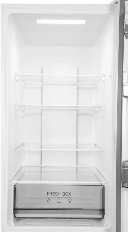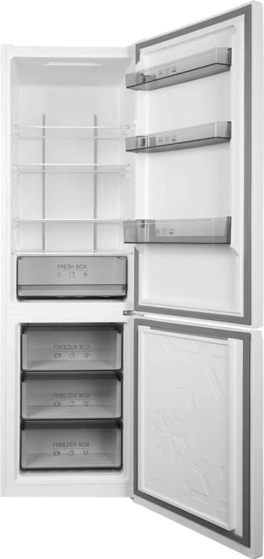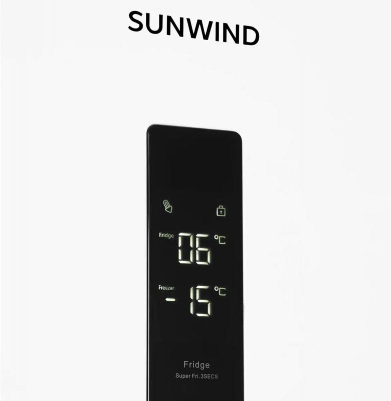 Холодильник SUNWIND SCC356 двухкамерный с нижним расположением морозильной камеры. Общий объем составляет 344 литра, полезный - 335 литров. Холодильное отделение объемом 240 литров имеет систему No Frost и содержит четыре полки из закаленного стекла и один ящик. Морозильная камера объемом 95 литров оборудована системой No Frost и включает три ящика. Управление сенсорное, предусмотрен внешний дисплей с индикацией температуры. Класс энергопотребления A+, годовое потребление электроэнергии 303 кВт*ч. Используется хладагент R600a. Корпус белого цвета оснащен регулируемыми по высоте ножками. Уровень шума составляет 40 дБ. Габариты прибора 59.5х195.3х63.5 см, вес 60 кг.