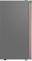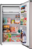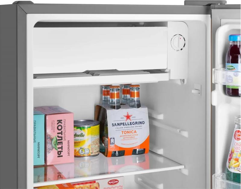 Холодильник MAUNFELD MFF83GD — однокамерный без морозильной камеры, оснащённый механическим управлением и капельной системой размораживания с технологией DeFrost. Общий объём составляет 92 л, полезный — 85 л. Температура в камере регулируется в диапазоне от +1 °C до +7 °C. Внутри установлены три полки из закалённого стекла и один ящик; на дверце — три полки. Корпус выполнен с дверью из матовой нержавеющей стали, допускает перевешивание и монтаж с нулевым зазором. Уровень шума — 40 дБ, класс энергопотребления — A+ (112 кВт·ч/год). Хладагент — R600a, компрессор — один, стандартный. Предусмотрено антибактериальное покрытие внутренней поверхности. При отключении питания продукты сохраняются до 12 часов. Размеры (Ш×В×Г): 47×83,1×44,7 см, вес — 19 кг.