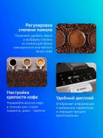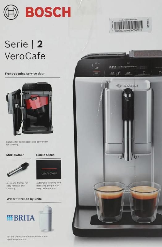 Кофемашина BOSCH TIE20301 работает с молотым и зерновым кофе. Мощность 1300 Вт, давление помпы 15 бар. Объем резервуара для воды 1.4 литра, емкость контейнера для зерен 250 грамм. Встроенная кофемолка предлагает 13 степеней помола. Есть возможность регулировки крепости напитка и одновременного приготовления двух порций. Автоматический капучинатор в комплекте. Машина готовит американо, капучино, латте макиато и эспрессо. Информационный дисплей обеспечивает удобное управление. Предусмотрено автоматическое выключение. Корпус выполнен из пластика серебристого и черного цвета. Размеры: ширина 247 мм, высота 420 мм, глубина 378 мм. Вес 7.1 кг.