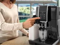 Кофемашина DELONGHI ECAM 350.50.B работает с зерновым и молотым кофе. Объем резервуара для воды составляет 1.8 л, контейнера для зерен - 300 г. Встроенная жерновая металлическая кофемолка имеет 15 степеней помола. Машина готовит американо, капучино, латте макиато и эспрессо объемом от 20 до 240 мл. Есть функция одновременного приготовления двух порций. Автоматический капучинатор оснащен кувшином для молока емкостью 800 мл. Предусмотрена регулировка жесткости воды, крепости напитка (5 уровней), температуры и объема. Съемные элементы включают блок заваривания, дренажный отсек, контейнер для отработанного кофе и резервуар для воды. Имеется подогрев чашек, подсветка, информационный дисплей и регулируемый по высоте дозатор. Автоматическое выключение, предварительное заваривание, программы самоочистки, ополаскивания и очистки от накипи. Корпус выполнен из пластика черного цвета. Габариты: 230х355х430 мм, вес 9.5 кг.