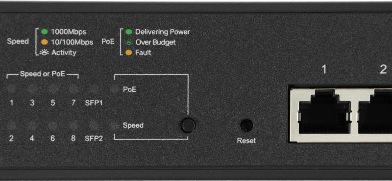 Тип управляемый, возможен монтаж в 19" стойку, настольный, L2+ Порты 10/100/1000BASE-T 8 шт., SFP 2шт Поддержка PoE портов PoE+ 8шт, PoE бюджет 150 Вт Таблица MAC-адресов 8K Интерфейсы и управление WEB-интерфейс управления, облачное управление, поддержка CLI, поддержка Telnet Исполнение внутреннее; материал корпуса: металл