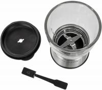 Кухонный процессор KITFORT КТ-1395 оснащен двигателем мощностью 800 Вт и пятью скоростями, включая импульсный режим. В комплект входят чаша комбайна объемом 1,2 л (пластик), стеклянная чаша блендера на 1,5 л, кофемолка (0,2 л), измельчитель (0,7 л) и контейнер для сока (0,8 л). Устройство совмещает функции терки, шинковки, соломорезки, блендера, кофемолки, центробежной и цитрусовой соковыжималки, измельчителя мяса, а также включает насадки для жидкого теста, нож и мутовку. Все съемные части разрешено мыть в посудомоечной машине. Корпус выполнен из пластика, имеет прорезиненные ножки и цветовое исполнение серебристый/черный. Габариты: 355 × 397 × 192 мм, вес — 9,3 кг.