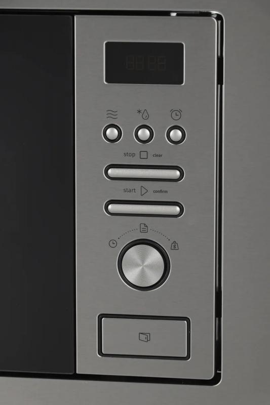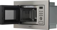 Микроволновая печь GORENJE BM201AM1X имеет объем 20 литров и мощность 800 Вт. Управление электронное с сенсорным дисплеем. Предусмотрено 5 уровней регулировки мощности. Дверца открывается кнопкой справа налево. Внутренняя камера выполнена из нержавеющей стали с поворотным столом диаметром 245 мм. Модель оснащена 15 автоматическими программами включая разморозку по весу и приготовление. Есть функция блокировки от детей и система очистки AquaClean. В комплектацию входит внутреннее освещение. Звуковой сигнал окончания работы можно отключить. Корпус выполнен из нержавеющей стали с черными элементами. Габариты печи составляют 59.5х38.8х34.4 см при весе 15 кг. Размеры ниши для встраивания 56.8х38х36 см.