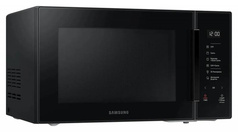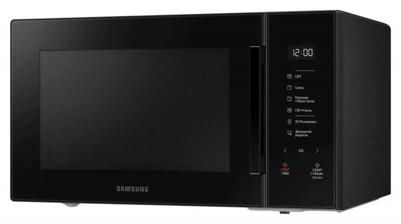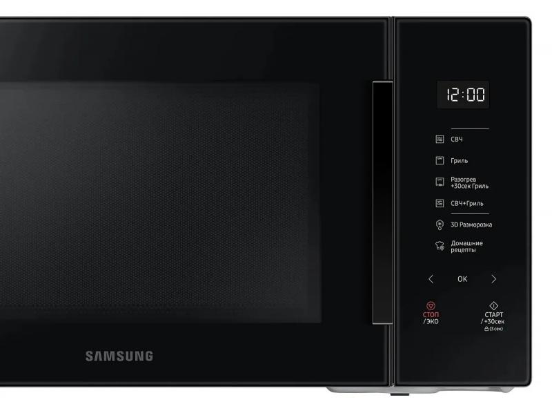 Микроволновая печь SAMSUNG MG30T5018AK/BW имеет объем 30 литров и мощность микроволн 900 Вт. Управление сенсорное с возможностью быстрого старта, регулировкой мощности на шести уровнях и функцией добавления 30 секунд. Предусмотрена блокировка от детей и отключение звукового сигнала. Модель оснащена грилем мощностью 1500 Вт и поворотным столом диаметром 318 мм. Внутреннее покрытие выполнено из биокерамической эмали. Имеются режимы автоматического приготовления, размораживание по весу и ускоренная разморозка. Система равномерного распределения микроволн обеспечивает обработку продуктов. На корпусе расположен дисплей и часы. Дверца открывается справа налево с помощью ручки. Цвет черный. Размеры изделия 51.7х29.7х42.5 см, внутренней камеры 35.7х25.5х35.7 см. Вес 15.9 кг.