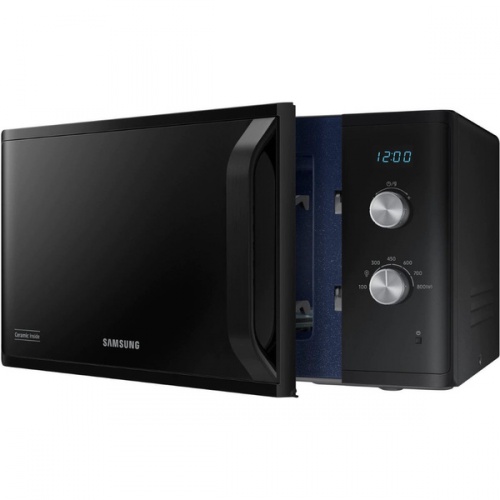 Микроволновая печь SAMSUNG MS23K3614AK/BW имеет объем 23 литра и мощность 800 Вт. Управление механическое, дверца открывается справа налево с помощью ручки. На корпусе расположен дисплей и часы. Предусмотрены функции быстрого старта, паузы, звукового сигнала окончания приготовления и регулировка мощности на 6 уровней. Внутреннее покрытие выполнено из биокерамической эмали, диаметр поворотного стола составляет 288 мм. Основные режимы включают автоматическую разморозку и соло-режим, дополнительные возможности представлены размораживанием по весу, системой равномерного распределения микроволн и ускоренной разморозкой. Цвет черный. Габариты устройства составляют 48.9 х 27.5 х 37.4 см, внутренние размеры камеры 33 х 21.1 х 32.4 см, вес 12 кг.