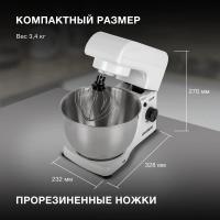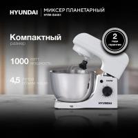 Планетарный миксер HYUNDAI HYM-S4451 с мощностью 1000 Вт оснащен мотором, обеспечивающим 8 скоростных режимов и импульсное управление. Модель имеет чашу из нержавеющей стали объемом 4.5 литра с максимальной загрузкой 1.5 кг. Корпус выполнен из пластика, скорость вращения составляет 140 об/мин. В комплект входят три насадки: венчик для взбивания, крюки для теста и лопатка для перемешивания. Миксер оснащен защитным ободом и прорезиненными ножками для устойчивости. Класс защиты от поражения электротоком II. Длина сетевого кабеля 1.3 метра. В комплектацию также входит книга рецептов. Размеры устройства 328 х 232 х 270 мм, вес 3.4 кг.