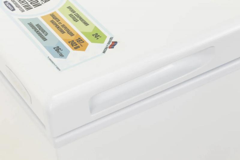 Морозильная камера БИРЮСА Б-260KX обладает общим объемом 240 литров и относится к климатическому классу N. Температура внутри камеры достигает минус 18 градусов. Размораживание выполняется вручную. Устройство способно замораживать до 14 кг продуктов в сутки. При отключении электропитания сохраняет холод до 8 часов. Оснащена одним компрессором с уровнем шума 43 дБ. Управление механическое. Дверца открывается вверх. Модель однокамерная с одной дверью и одной корзиной. Годовое потребление энергии составляет 438 кВт*ч при мощности 102 Вт. На корпусе установлены колеса для перемещения. Имеет функцию суперзаморозки. Оповещение звуковыми сигналами о повышении температуры и работе. Цвет белый. Размеры 93.5 х 81.5 х 66.5 см. Вес 34 кг.