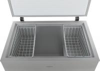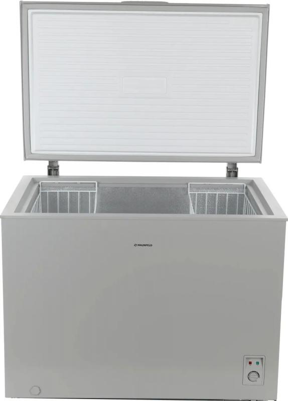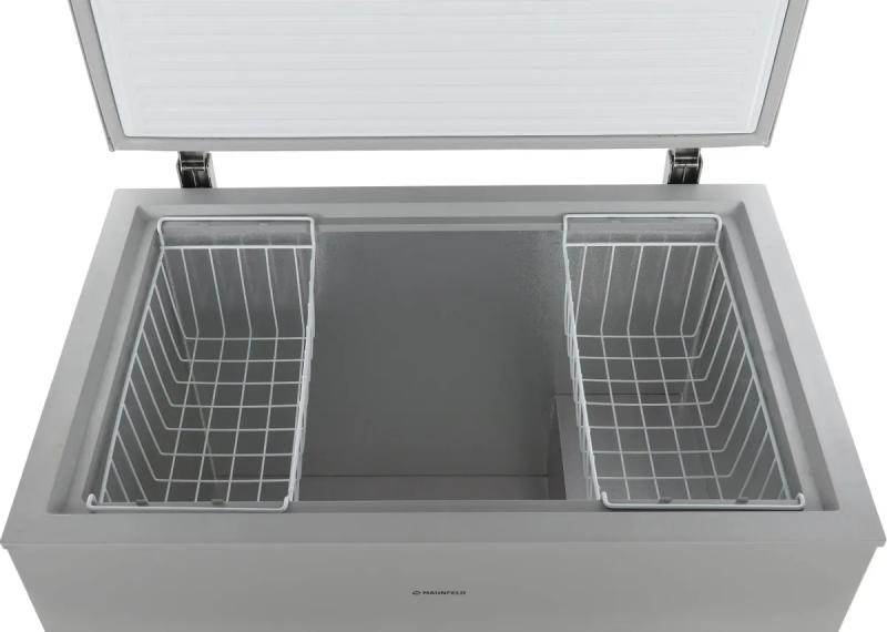 MAUNFELD MFL300GR представляет собой однокамерную морозильную камеру с механическим управлением и верхним открыванием дверцы. Общий и полезный объем составляют 292 литра. Устройство оснащено одним компрессором и работает на хладагенте R600a. Мощность замораживания достигает 12 кг/сутки, а при отключении электропитания продукты сохраняются до 35 часов. Система размораживания ручная. Модель поддерживает функцию суперзаморозки и имеет антибактериальное покрытие. Климатический класс N, SN, ST позволяет использовать технику в различных температурных условиях. Температурный диапазон от -30°C до -12°C. Годовое энергопотребление составляет 266 кВт*ч, класс энергоэффективности A+. Внутри расположены две корзины для хранения продуктов. Техника укомплектована регулируемыми по высоте ножками и колесами для удобства перемещения. Уровень шума не превышает 42 дБ. Размеры устройства 105.5 х 83.5 х 69 см, вес 45 кг. Цвет серый.