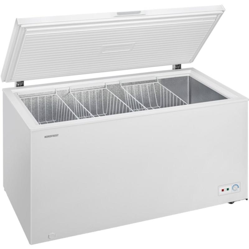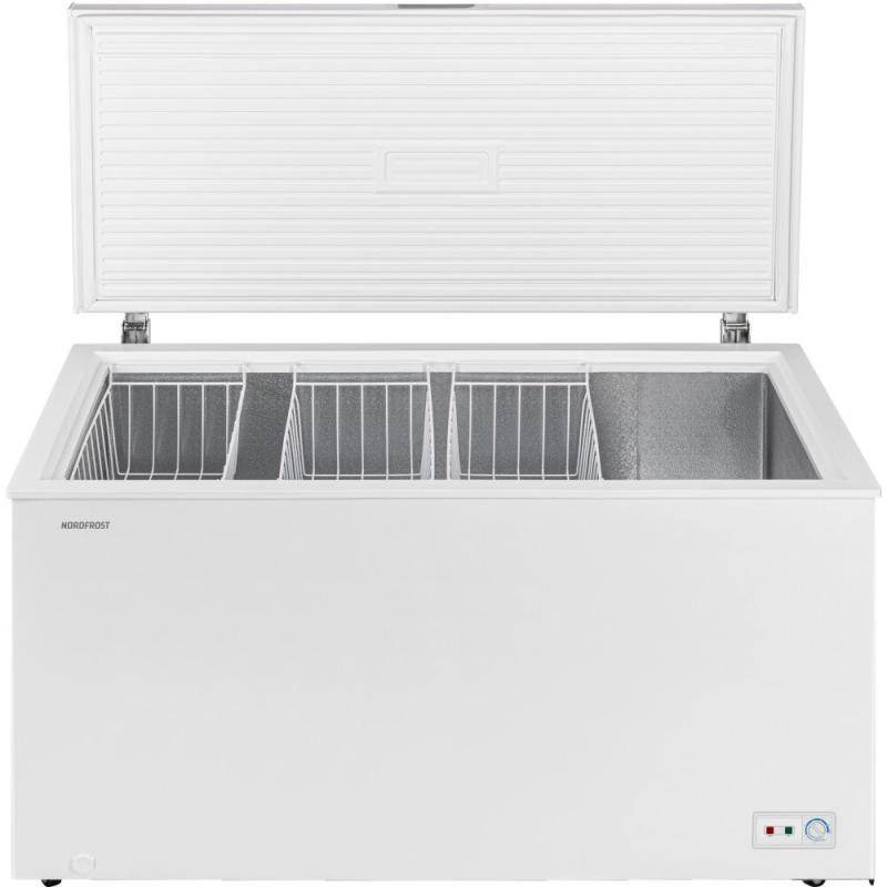 Морозильный ларь Nordfrost CF 500 работает на хладагенте R600a и оснащен одним компрессором. Температурный режим варьируется от -28 до +5 °C, уровень шума составляет 44 дБ. Полезный объем морозильной камеры равен 420 литрам, мощность замораживания достигает 28 кг/сутки. Ларь имеет глухую крышку белого цвета. Габариты модели составляют 136.5 см в ширину, 73 см в глубину и 83.5 см в высоту, вес устройства равен 53 кг.