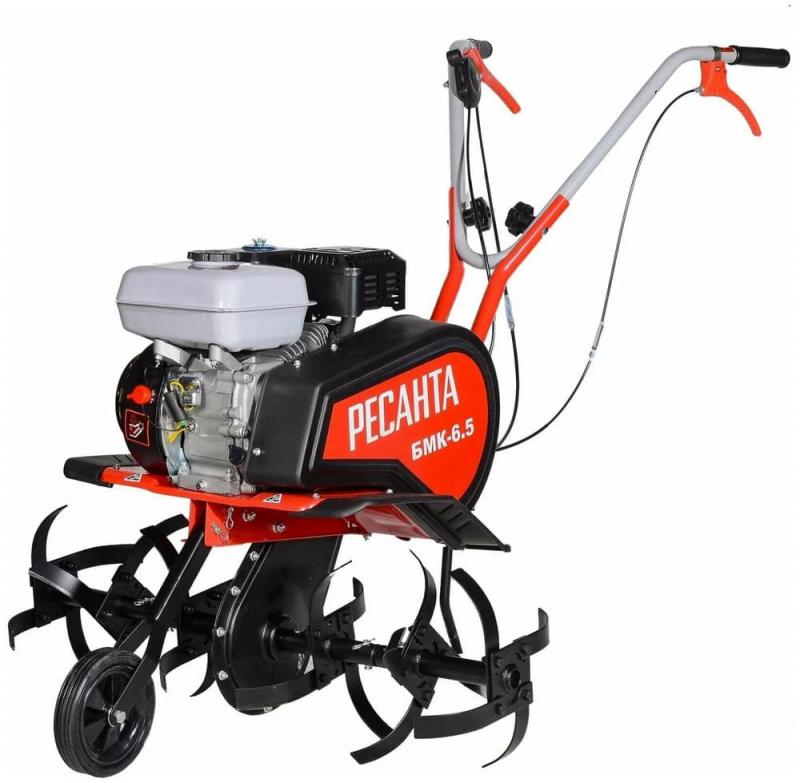 Бензиновый мотокультиватор РЕСАНТА БМК-6,5 с шириной обработки 85 см и глубиной культивации 30 см. Оснащен одноцилиндровым 4-тактным двигателем мощностью 6.5 л.с., работает на топливе АИ-92. Объем топливного бака – 3.6 л. Имеет цепной редуктор, 1 переднюю и 1 заднюю передачу. В комплект входят двигатель в сборе, разборная ручка управления, 2 фрезы с хромовым покрытием поршневой группы, колесо для транспортировки, сошник, крепеж, инструменты и паспорт. Усиленная поршневая группа и закаленные фрезы обеспечивают надежность работы. Гарантия на двигатель – 36 месяцев. Подходит для обработки участков средней площади. Вес: 50 кг.