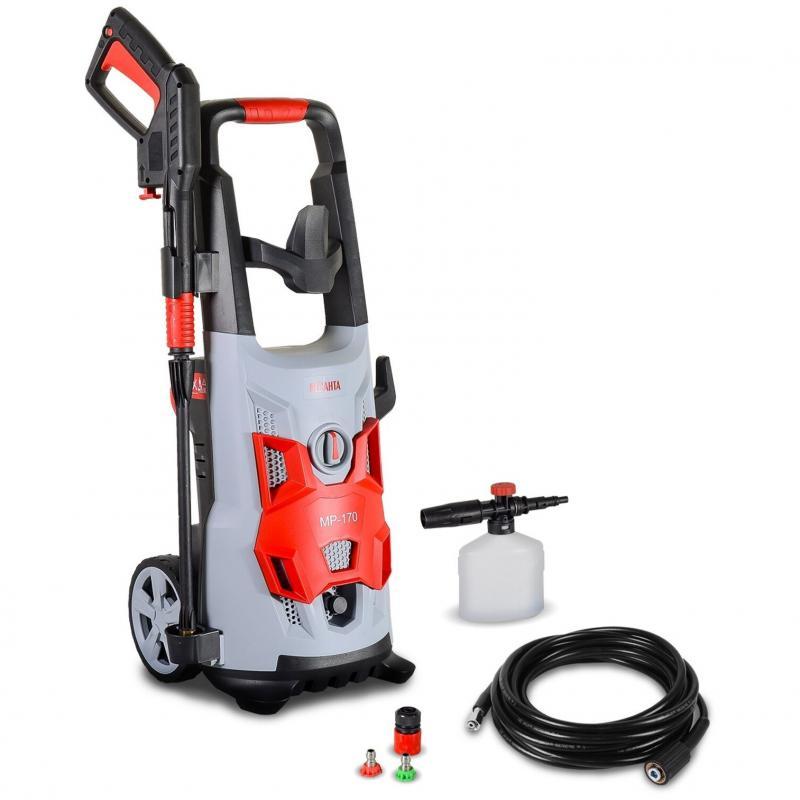 Мойка высокого давления РЕСАНТА МР-170 с электрическим двигателем мощностью 1900 Вт обеспечивает максимальное рабочее давление до 170 бар. Устройство поддерживает температуру воды на входе до 50 °С и допускает давление воды на входе до 4 бар. Корпус насоса изготовлен из алюминия. Предусмотрена возможность использования чистящего средства через внешний пистолет. Забор воды возможен из внешней емкости. Встроенный фильтр грубой очистки защищает оборудование от загрязнений. Система хранения аксессуаров размещена на корпусе. Длина шланга высокого давления 8 м. Сетевой кабель оснащен ручной системой намотки. Габариты: 385x325x600 мм. Вес без принадлежностей: 10.5 кг.