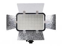 Характеристики: количество светодиодов - 170, освещенность - 1350 Лк/1 м. цветовая температура - 5500-6500 К, продолжительность автономной работы - ~60 мин., мощность - 10 Вт, тип батареи - 8 батареек (или аккумуляторов) АА (приобретаются отдельно), сетевой адаптер. Размер корпуса: 172х108.6х42.5. Вес: 350 г.