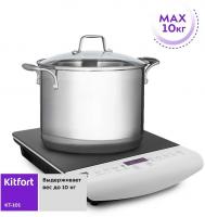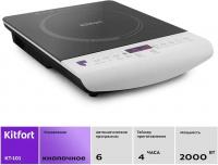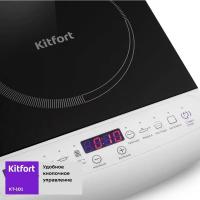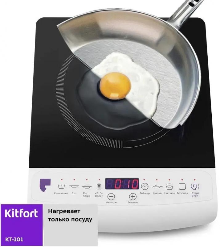 Настольная электрическая плита KITFORT КТ-101 оснащена одной индукционной конфоркой мощностью 2000 Вт с возможностью выбора из 10 режимов регулировки температуры. Управление осуществляется кнопочным способом, присутствует дисплей. Варочная поверхность выполнена из стеклокерамики. Модель предлагает 6 автоматических программ приготовления: базовая, жарка, кипячение, суп, рис/каша, на пару. Имеется электронный таймер и функция защитного отключения. Цвет корпуса белый/черный. Габариты плиты составляют 36 x 6.2 x 28 см, вес 2.1 кг.