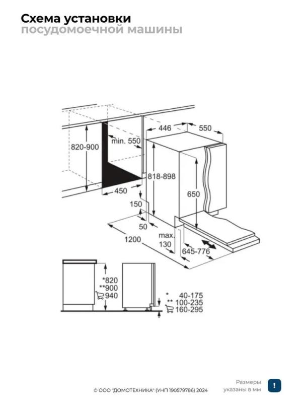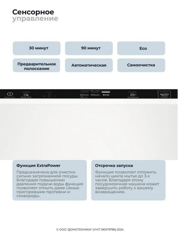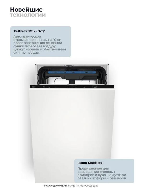 Встраиваемая посудомоечная машина Electrolux EEA23210L из серии AirDry 300 вмещает до 10 комплектов посуды. Оснащена 6 программами, включая ежедневную, экономичную, деликатную для стекла, интенсивную и короткую длительностью 30 минут. Класс энергоэффективности E, классы мойки и сушки A. Расход воды за цикл составляет 9.9 л, электроэнергии - 0.75 кВт·ч. Уровень шума достигает 46 дБ. Сушка осуществляется с открыванием дверцы. Верхняя корзина регулируется по высоте, имеет складывающиеся держатели. Предусмотрена дополнительная сушка и программа самоочистки. Управление сенсорное со светодиодной индикацией. Есть таймер отложенного старта на 3 часа и блокировка от детей. Индикаторы отсутствия соли и ополаскивателя. Габариты (ШxГxВ): 44.6x55x81.8-87.8 см. Размеры ниши для встраивания: 45x55x82-88 см.