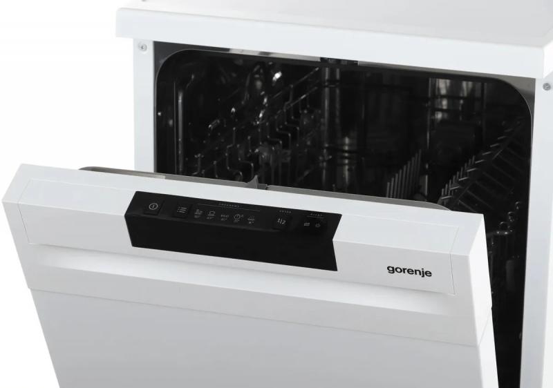 Посудомоечная машина GORENJE GS520E15W с узким корпусом и напольной установкой оснащена конденсационной системой сушки. Модель имеет 5 программ мойки, включая БИО, интенсивную, экономичную и экспресс-программу. Предусмотрен режим предварительного ополаскивания. Вместимость составляет 9 комплектов посуды. Внутреннее пространство организовано с помощью двух корзин, полок для кружек, складных держателей тарелок и регулируемой по высоте верхней корзины. Машина оборудована двумя разбрызгивателями и системой AquaStop для защиты от протечек. Температурные режимы варьируются от 35 до 65 градусов. Управление электронное с индикацией наличия соли и ополаскивателя. Расход воды достигает 9 литров за цикл. Уровень шума составляет 47 дБ. Классы эффективности: мойка A, сушка A, энергопотребление A++. Максимальная мощность 1850 Вт. Габариты (ШхВхГ) 44.8х84.5х60 см, вес 36.5 кг.