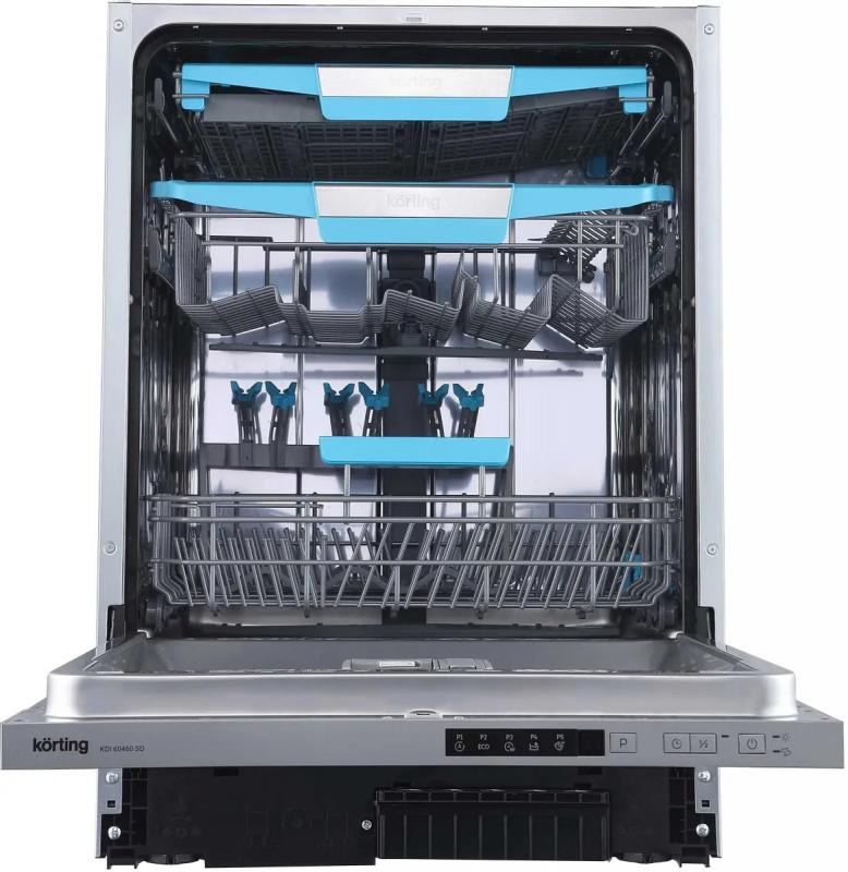 Полноразмерная встраиваемая посудомоечная машина KORTING KDI 60460 SD вмещает 14 комплектов посуды и оснащена тремя корзинами, включая отдельную для столовых приборов. Модель предлагает 5 программ мойки: Авто, Интенсивная, Эко, 90 минут и Быстрая, с поддержкой автоматических режимов и функции половинной загрузки. Тип сушки активный, класс энергопотребления A++, классы мойки и сушки A. Расход воды варьируется от 10 до 15 литров, уровень шума достигает 47 дБ. Электронное управление дополнено дисплеем и индикацией наличия соли и ополаскивателя. Безопасность обеспечивает система AquaStop и защита от протечек корпуса и шланга. Возможна отсрочка запуска до 24 часов. Поддерживается использование средств 3 в 1. Параметры электропитания: мощность 2100 Вт, напряжение 220-240 В, длина кабеля 150 см. Длина подводящего шланга 183 см, отводящего - 160 см. Размеры (ШxВxГ): 59.8 x 81.5 x 55 см. Размеры ниши для встраивания: ширина 60 см, высота от 82 см, глубина 58 см.