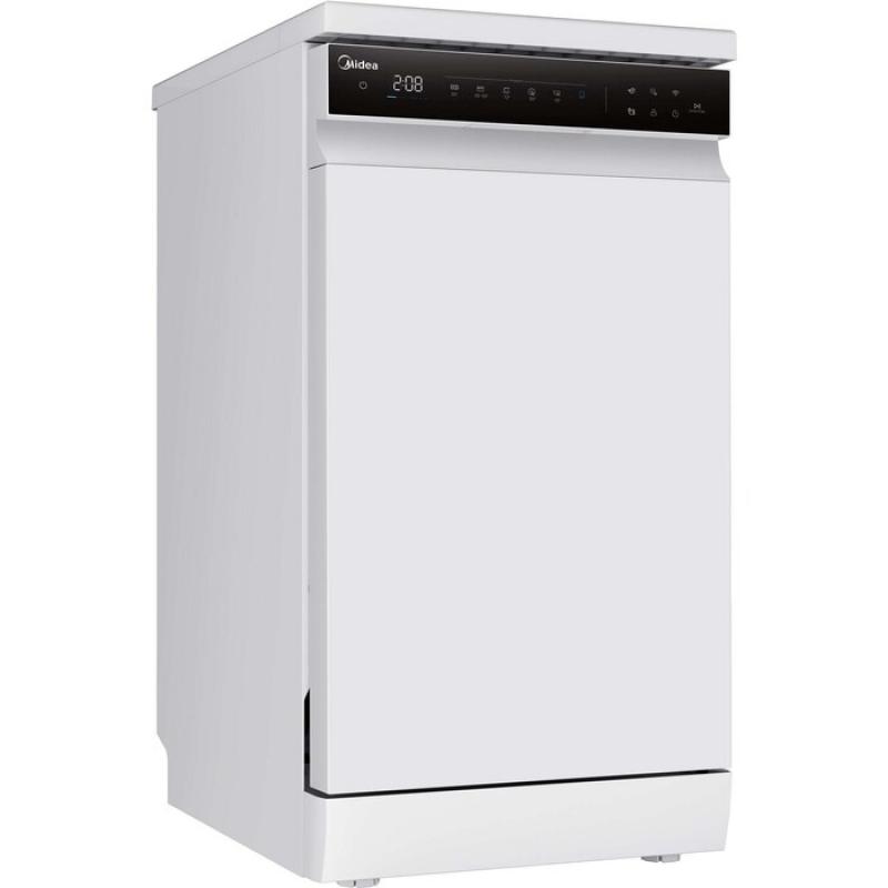 Посудомоечная машина MIDEA MFD45S510Wi с узким корпусом и напольной установкой оснащена конденсационной системой сушки. Вмещает до 10 комплектов посуды. Имеет 10 программ мойки включая ЭКО Интенсивную Быструю и специальные режимы Cloud Wash. Обеспечивает классы мойки и сушки A энергоэффективности A++. Расходует максимум 9 литров воды при уровне шума 44 дБ. Оснащена дисплеем автоматическим открыванием дверцы тремя корзинами включая регулируемую защитой от протечек AquaStop защитой от детей и таймером отсрочки запуска до 24 часов. Совместима с голосовым помощником Алиса через экосистему Яндекс. Потребляет до 2100 Вт работает от сети 220-240 В частотой 50 Гц. Размеры 44.8х84.5х60 см вес 40 кг.
