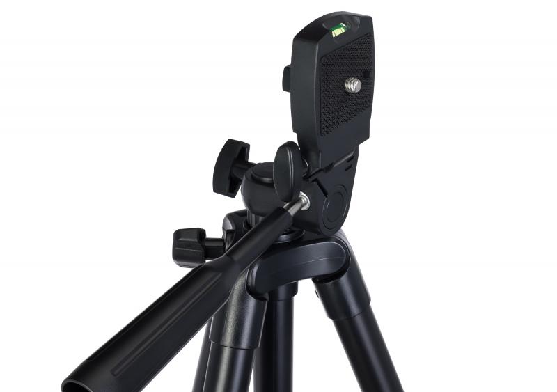 Levenhuk Level BASE TR7 — напольный штатив из алюминия с поворотной пластиковой головкой и резьбовым креплением 1/4 дюйма. Высота регулируется удлинением ножек и центральной секции. Фиксация ножек осуществляется флип-замками. Головка обеспечивает вращение на 360° по горизонтали и наклон вперед-назад. Установочная площадка откидывается до угла 90°. В конструкции предусмотрен пузырьковый уровень. Ножки имеют обрезиненное покрытие. Максимальная нагрузка 2 кг. Размеры упаковки: 44х8х8 см. Вес: 0.73 кг.