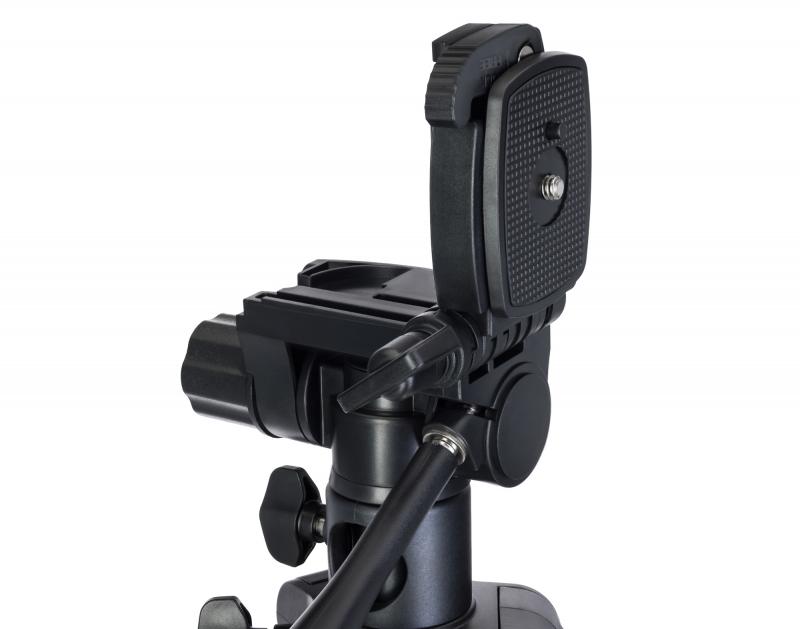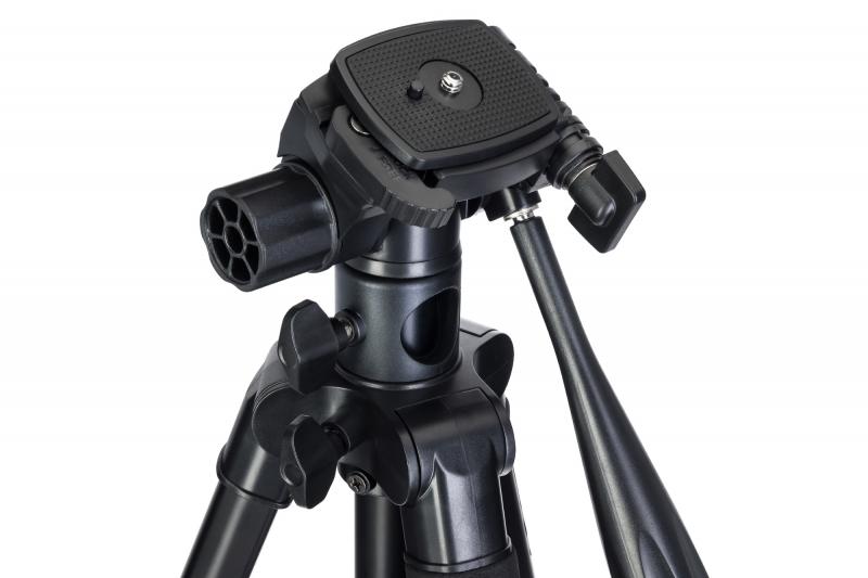 Levenhuk Level PLUS VT5 — напольный штатив из алюминия с поворотной головкой и быстросъемной площадкой с резьбовым креплением 1/4 дюйма. Максимальная нагрузка — 5 кг. Головка обеспечивает вращение по горизонтали и наклон вверх-вниз. Фиксатор площадки откидывается вбок до угла 90°. Центральная секция может использоваться как монопод или горизонтальный держатель. Высота регулируется выдвижением ножек с флип-замками и центральной штанги. Ножки имеют резиновое покрытие. В конструкции предусмотрен крюк для утяжелителя и встроенный пузырьковый уровень. Размеры упаковки: 59х12х12 см. Вес: 2 кг.