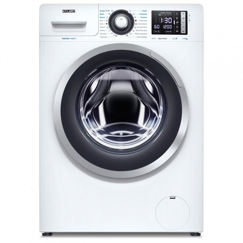Стиральная машина АТЛАНТ СМА 70У1214-01 с фронтальной загрузкой до 7 кг оснащена электронным управлением на русском языке. Диаметр люка 34 см, открывание влево. Максимальная скорость отжима 1200 об/мин. Уровень шума при стирке 59 дБ, при отжиме 75 дБ. Расход воды 52 л. Барабан из нержавеющей стали, бак пластиковый. Есть шланг аварийного слива и регулируемые ножки. Обеспечивает защиту от детей, скачков напряжения, контроль пены. Таймер отсрочки запуска до 24 часов. Включает 18 программ и 9 режимов стирки. Температура 20-90°C. Классы: стирки A, отжима B, энергопотребления A++. Потребляемая мощность 1900 Вт. Размеры 59.6х84.6х40.6 см, глубина с выступами 48.9 см, вес 62 кг. Цвет белый, люк серебристый с черной накладкой.