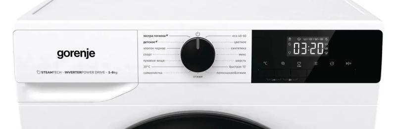 Стиральная машина GORENJE W1NHPI62SCSIRV с фронтальной загрузкой на 6 кг белья оснащена инверторным мотором и электронным управлением. Максимальная скорость отжима достигает 1200 об/мин, уровень шума при стирке составляет 56 дБ, при отжиме - 74 дБ. Объем барабана 43 литра. Машина имеет встроенный резервуар для воды и регулируемые ножки для установки. Предусмотрены функции блокировки от случайного нажатия, защиты от детей и таймер отсрочки запуска. Включает 15 программ стирки, в том числе для хлопка, спортивной одежды, шерсти, детских вещей и режим самоочистки SterilTub. Классы эффективности: стирка A, отжим B, энергопотребление A. Потребляемая мощность 1700 Вт. Габариты (ШхВхГ): 59.7 х 85 х 38.5 см, глубина с выступающими элементами 73.5 см, вес 57 кг. Цвет корпуса белый, люк черный.
