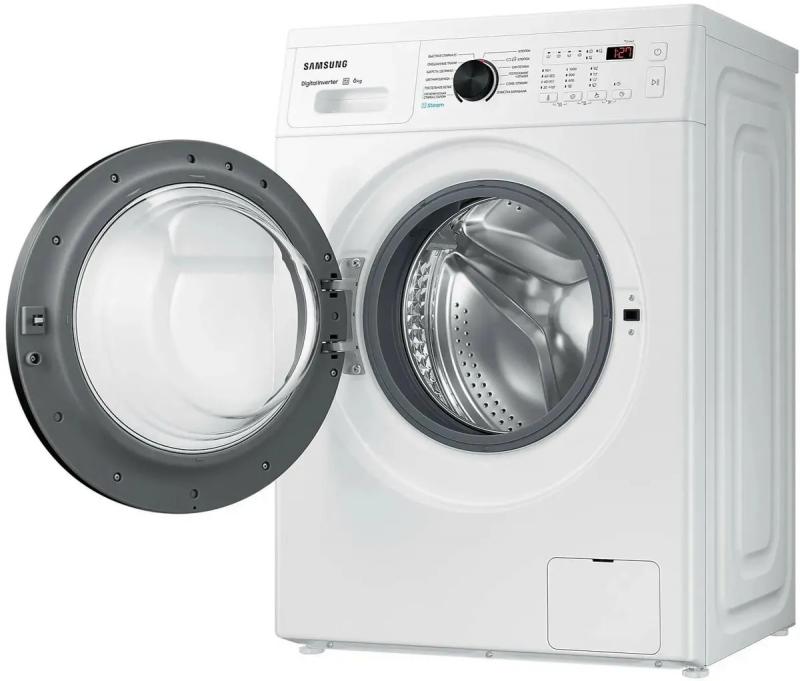 Стиральная машина Samsung WW60AG4S00CE/LD с фронтальной загрузкой на 6 кг белья оснащена инверторным двигателем и электронным управлением. Модель имеет 13 программ стирки, включая паровую обработку, скорость отжима до 1000 об/мин. Классы эффективности: стирка A, отжим B, энергопотребление A. Уровень шума при стирке составляет 56 дБ, при отжиме - 75 дБ. Расход воды за цикл - 36 литров. Предусмотрены защита от детей, блокировка кнопок, таймер отсрочки запуска. Габариты (ШхВхГ): 60х85х45 см, глубина с учетом выступающих элементов 52.5 см. Вес 51 кг. Цвет корпуса белый, люк черный.