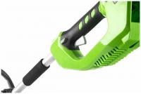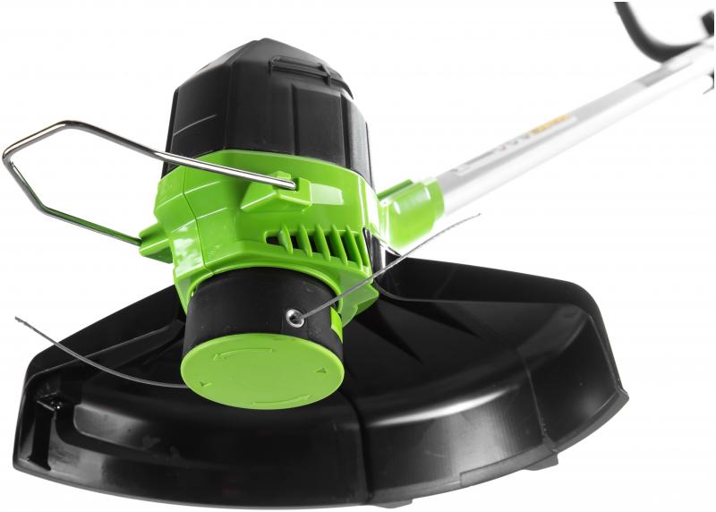 Аккумуляторный триммер GREENWORKS G40LTK2 работает от Li-Ion аккумулятора 40 В емкостью 2 Ач, который входит в комплект. Ширина скашивания 30 см, используется леска 1.6 мм с автоматической подачей. Частота вращения шпинделя до 7500 об/мин. Нижнее расположение двигателя с защитой от перегрузок. Предусмотрен предохранитель от случайного включения и защитный кожух режущей части. Режущая часть наклоняется для удобства работы. Время автономной работы до 20 минут, зарядка аккумулятора занимает 60 минут. Триммер оснащен удобной передней рукояткой и включается нажатием одной кнопки. Подходит для скашивания травы в труднодоступных местах. Вес: 4.1 кг.