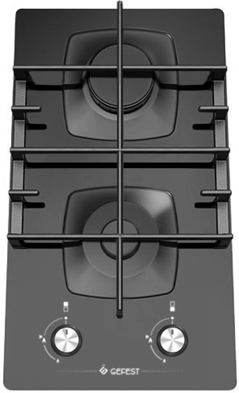 Независимая, газовая, поворотные переключатели, рабочая поверхность: закаленное стекло, конфорок: 2, газ-контроль конфорок, чугунные решетки, электроподжиг, размеры 10x30x53 см