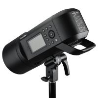Моноблок комплектуется мощным литий-ионным аккумулятором Godox WB26 (28,8 В / 2600 мАч) или Godox WB26А (29,6 В / 2500 мАч)*, который обеспечивает до 360 импульсов на полной мощности. Дополнительно можно приобрести сетевой адаптер (AC26), который позволит подключить моноблок к сети переменного тока для длительных студийных съемок.