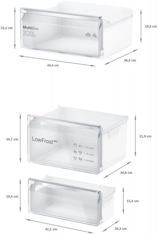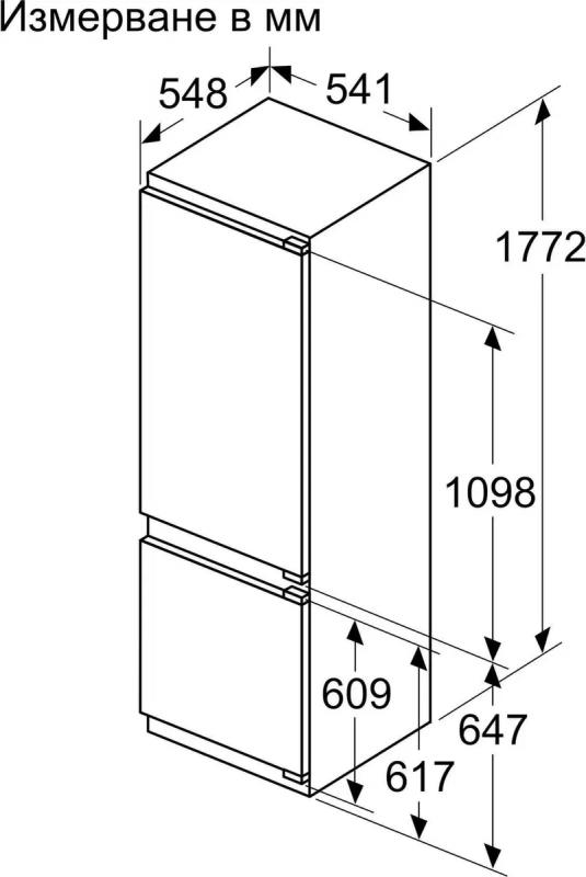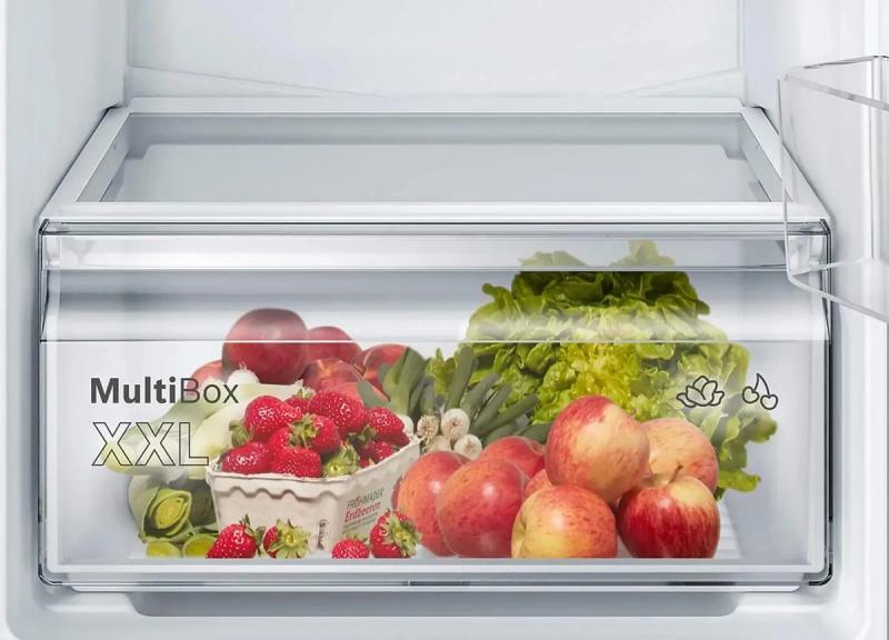 Холодильник BOSCH KIV87NSE0 с нижним расположением морозильной камеры имеет электронное управление и класс энергопотребления A++. Общий объем составляет 270 литров, из которых 200 литров приходится на холодильную камеру с капельной системой размораживания и 70 литров на морозильную камеру с ручной системой. В холодильном отделении установлено 5 стеклянных полок, 4 полки на дверце и имеется 1 ящик. Морозильная камера содержит 2 ящика и функцию суперзаморозки SuperFreezing. Устройство оснащено стандартным компрессором с хладагентом R600a, работает от сети 220-240В и имеет годовое потребление энергии 216 кВт*ч. Уровень шума составляет 35 дБ. Корпус белого цвета со светодиодной подсветкой. Габариты (ШхВхГ): 54.1 х 177.2 х 54.8 см. Размеры упаковки: 0.64x0.6x1.84 м.