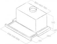 Вытяжка ELICA BL/A/50 работает в режимах отвода и циркуляции воздуха. Управление осуществляется кнопочным способом. Имеет три уровня мощности с максимальной производительностью 650 м3/час. Одномоторная конструкция оснащена алюминиевым жироулавливающим фильтром. Встроенная светодиодная подсветка мощностью 2 х 3 Вт обеспечивает освещение рабочей зоны. Антивозвратный клапан предотвращает обратный поток воздуха. Уровень шума составляет 46 дБ. Мощность подключения 121 Вт. Диаметр штуцера для отвода воздуха равен 120 мм. Угольный фильтр в комплект не входит. Корпус выполнен из нержавеющей стали с черными элементами. Габариты вытяжки составляют 49.8x14x28 см, размеры секции для встраивания 36х28 мм, вес 5 кг.