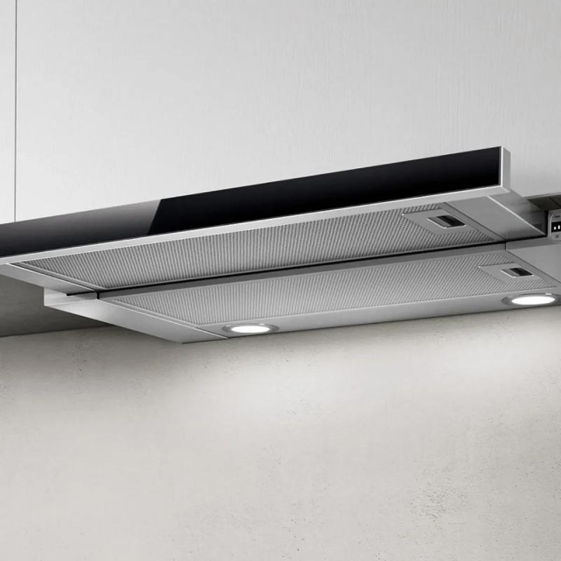 Вытяжка ELICA 26 IX/A/90/VT работает в режимах отвода и рециркуляции. Управление осуществляется кнопками с тремя скоростями. Одномоторная конструкция обеспечивает производительность до 900 м3/ч. Уровень шума не превышает 44 дБ. Модель оснащена алюминиевым жироулавливающим фильтром и антивозвратным клапаном. Имеется светодиодная подсветка мощностью 2 х 2.5 Вт, индикатор загрязнения фильтра, таймер и функция автовыключения. Интенсивный режим повышает эффективность работы. Угольный фильтр приобретается отдельно. Диаметр воздуховода составляет 150 мм. Потребляемая мощность - 180 Вт. Цвет корпуса серебристый с черными элементами. Габариты изделия 89.8x26.1x28 см, вес 12 кг. Размеры секции для встраивания 76 х 28 мм.
